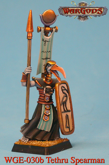 Contains Tethru Spearman, Shield, Back Banner, a random Tethru Head, and a single 20mm base.