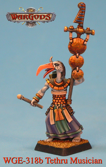 Contains Tethru Warrior Musician, Bow, random Tethru Head, and a single 20mm base.